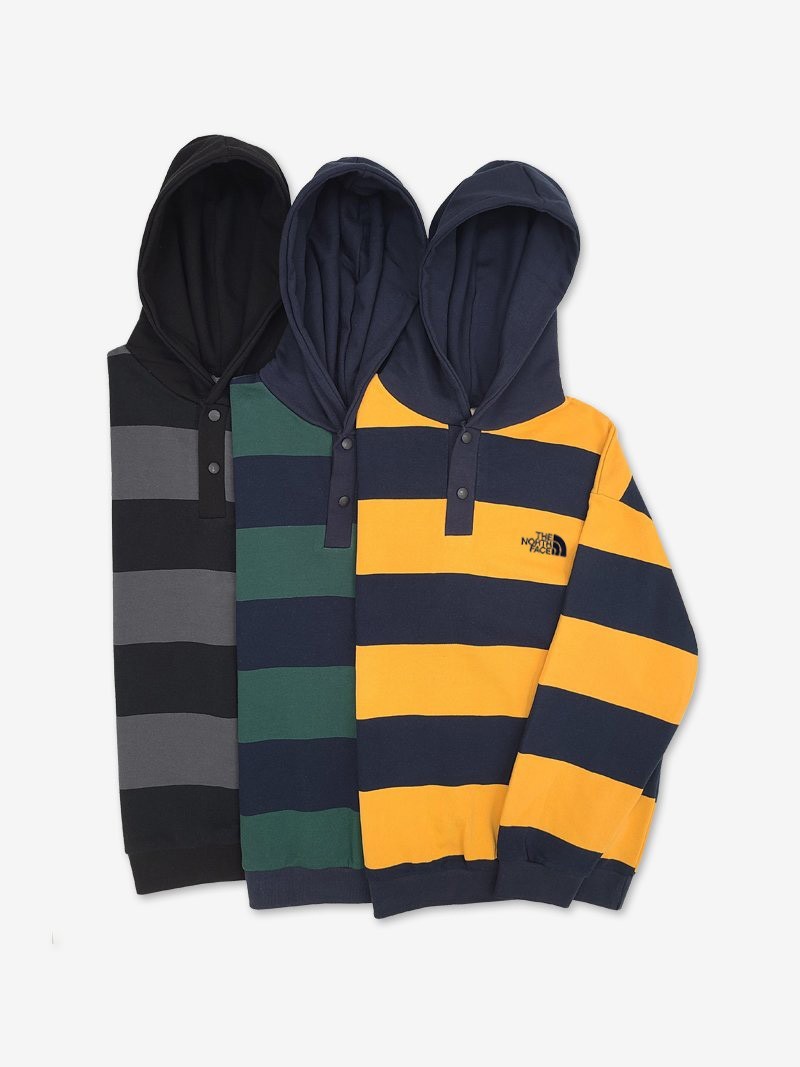 [국내배송]노스페이스 스트라이프 럭비 후드 맨투맨
