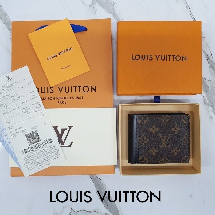 🔘색상 : 브라운 🔘사이즈 : W11.5cm x H9cm 🔘기타정보 : -제품 NO. M69408 -남성용 반지갑 -소재 모노그램 마카사르 캔버스/최고급 소가죽 -포켓 지폐2/카드5/보조2 -본품+더스트+박스+책자+영수증+쇼핑백 풀구성