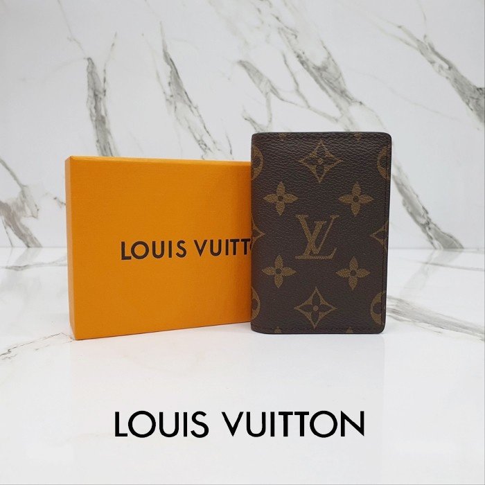 🔘색상 : 브라운 🔘사이즈 : W7.5cm x H11cm 🔘기타정보 : -제품 NO. M60502 -남/여공용 카드지갑 or 명함지갑 -소재 모노그램 캔버스/최고급 소가죽 -포켓 내부8/외부1 -본품/더스트/박스/책자 풀구성