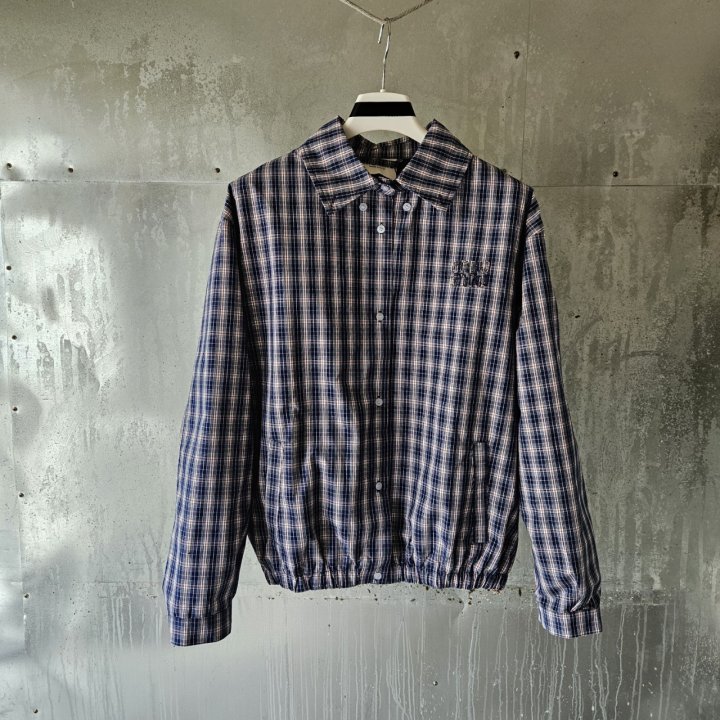 [국내배송]미우미우 체크 패브릭 블루종 자켓