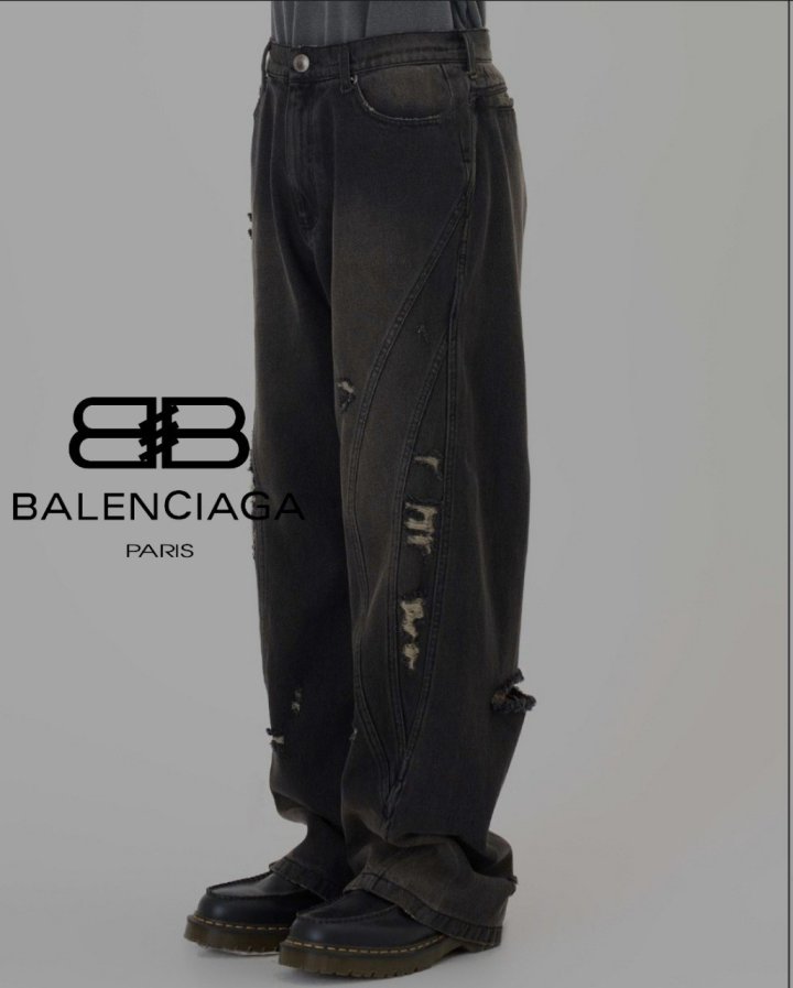 [국내배송]발렌시아가 와이드 절개 데미지 흑청