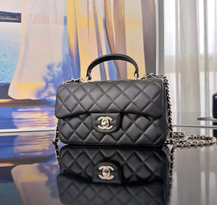 [국내배송]샤넬 뉴미니 탑핸들백 램스킨 블랙 금장 AS2431
