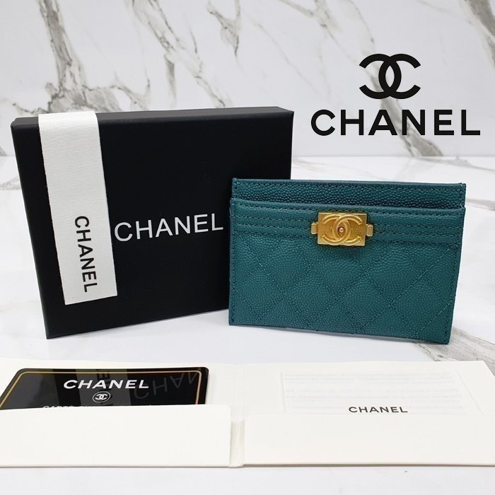 [국내배송]샤넬 보이 카드지갑 캐비어 금장