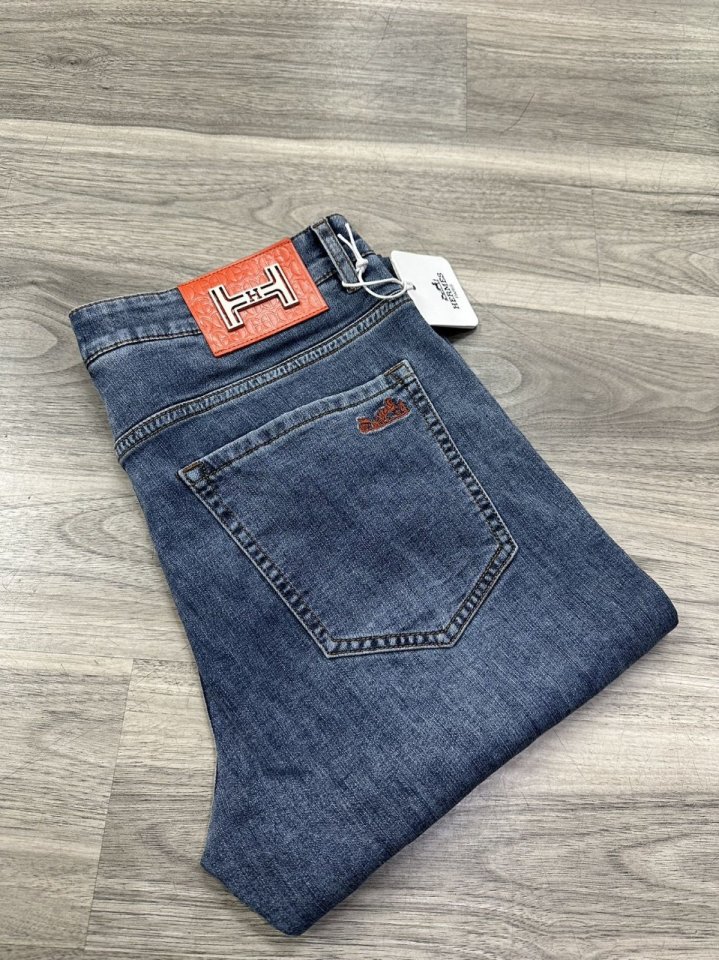 [국내배송]에르메스 2025 SS 오렌지 자수로고 포인트 스판데님진