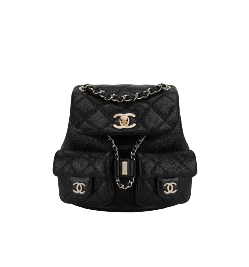 듀마 백팩 더블포켓 스몰(블랙/금장/캐비어)