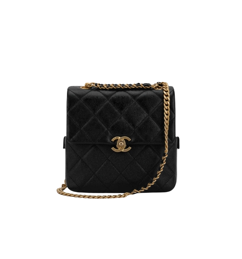 [프리미엄/해외배송]빈티지 체인 퀼팅 백팩(블랙/금장/캐비어)