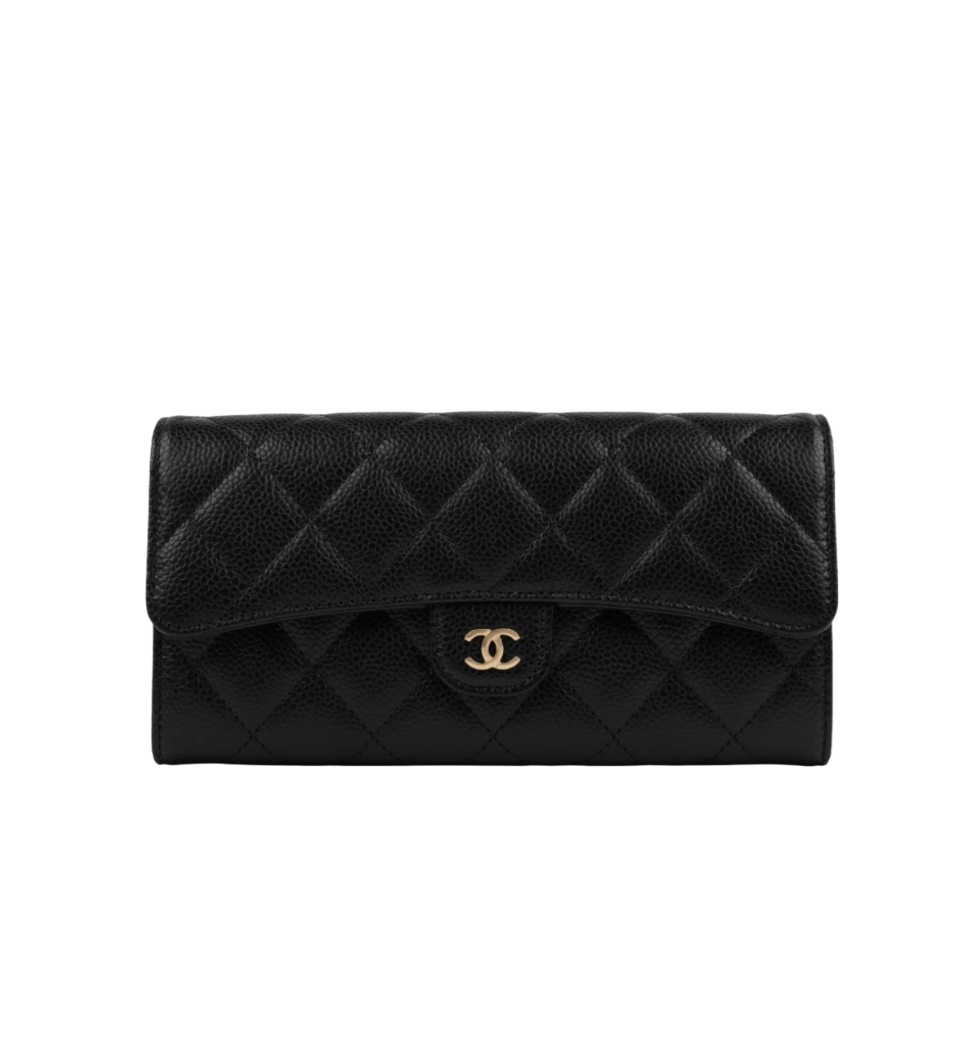 *정품가죽* 클래식 플랩 장지갑(블랙/금장/캐비어)