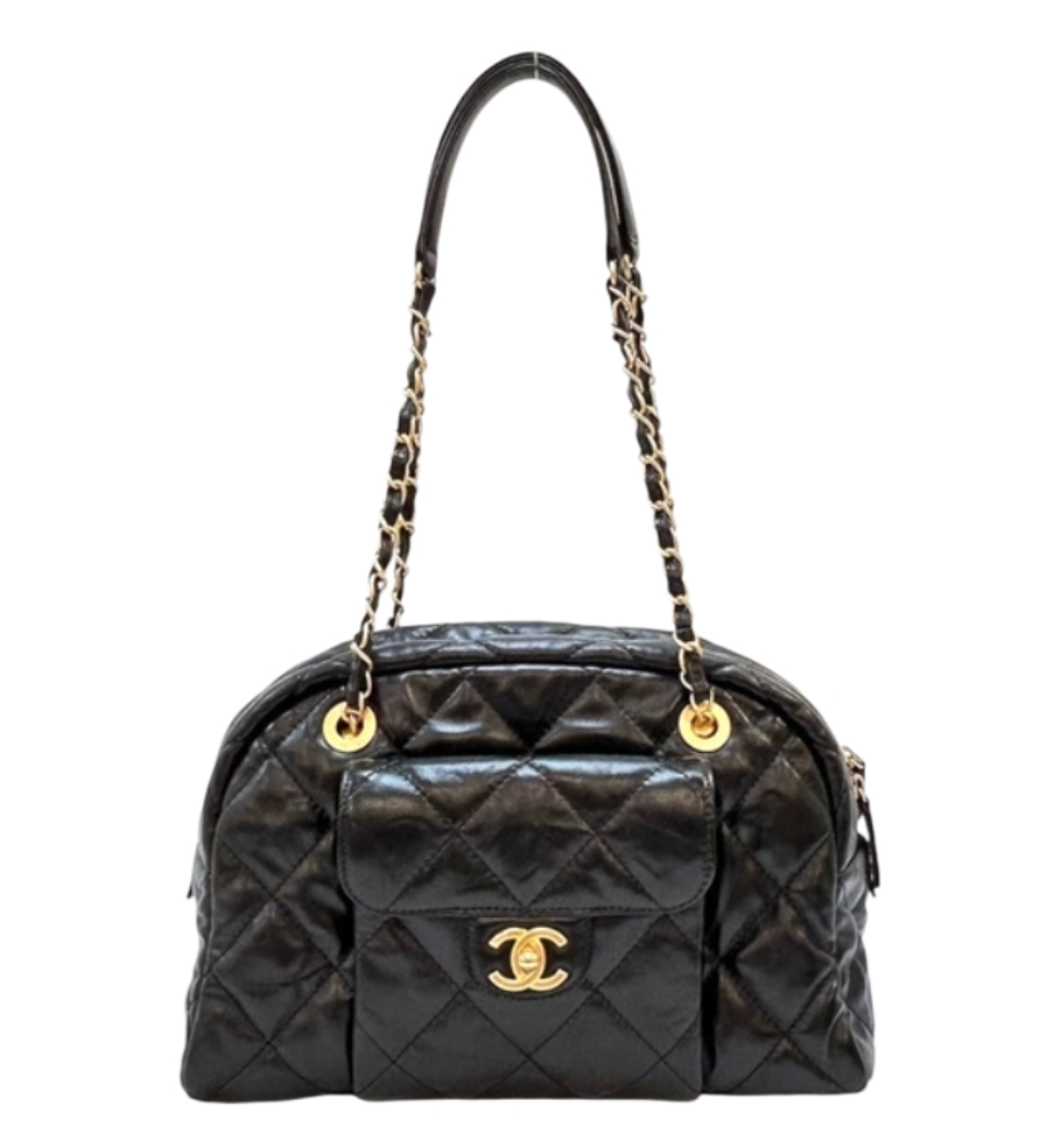 [프리미엄/해외배송]샤넬 포켓 체인 볼링 백 라지(블랙/금장/카프스킨)