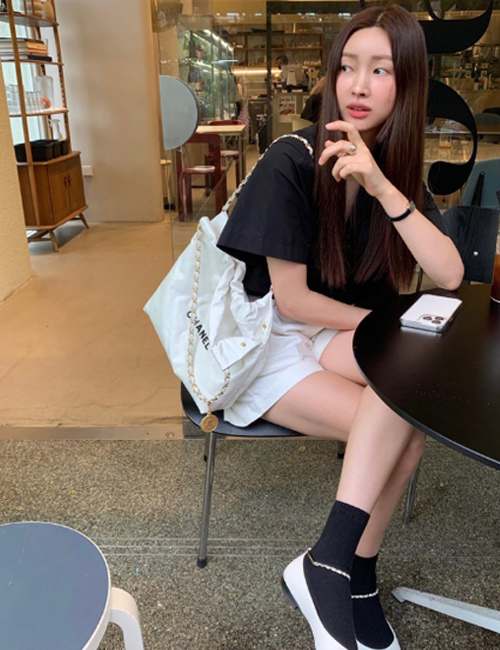 [chanel/팬더샵]22백 스몰 핸드백(화이트/흑장/램스킨)
