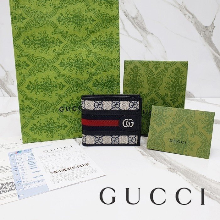 🔘색상 : 네이비 🔘사이즈 : W11cm x H9cm 🔘기타정보 : -제품 NO. 597606 -남성용 반지갑 -소재 GG 수프림 캔버스/최고급 소가죽 -포켓 지폐2/카드8/보조2 -본품+더스트+박스+책자+영수증+쇼핑백 풀구성