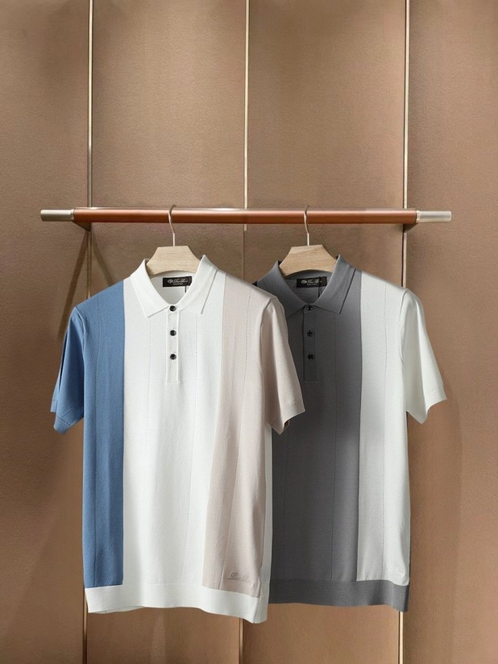 [국내배송]로로피아나 2025SS 세로배색포인트 자수로고 쿨니트 카라
