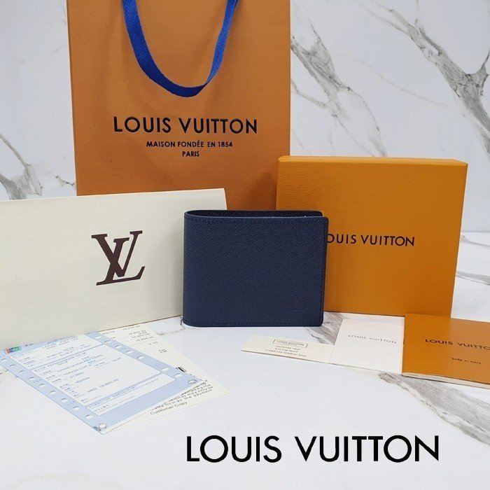 🔘색상 : 네이비 🔘사이즈 : W11.5cm x H9cm 🔘기타정보 : -제품 NO. M30530 -남성용 반지갑 -소재 타이가 최고급 소가죽 -포켓 지폐2/카드5/보조2 -본품+더스트+박스+책자+영수증+쇼핑백 풀구성
