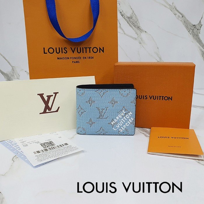 🔘색상 : 블루 🔘사이즈 : W11.5cm x H9cm 🔘기타정보 : -제품 NO. M14691 -남성용 반지갑 -소재 모노그램 헤리티지 캔버스/최고급 소가죽 -포켓 지폐2/카드5/보조2 -본품+더스트+박스+책자+영수증+쇼핑백 풀구성