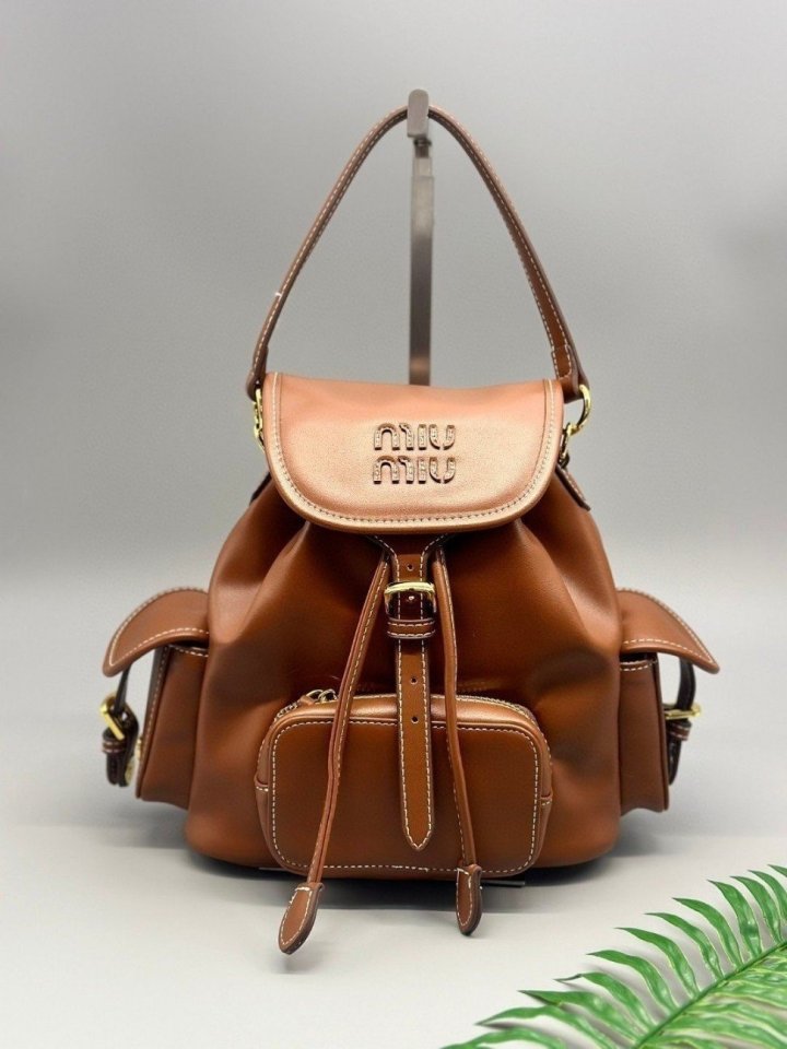 [국내배송]미우미우 와펜 로고 가죽 백팩