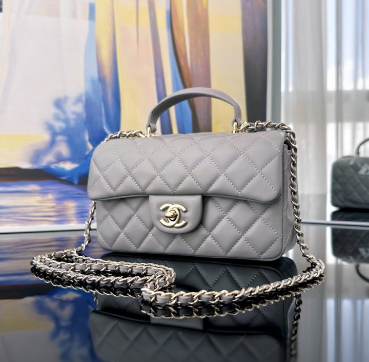 [국내배송]샤넬 뉴미니 탑핸들백 램스킨 그레이 금장 AS2431