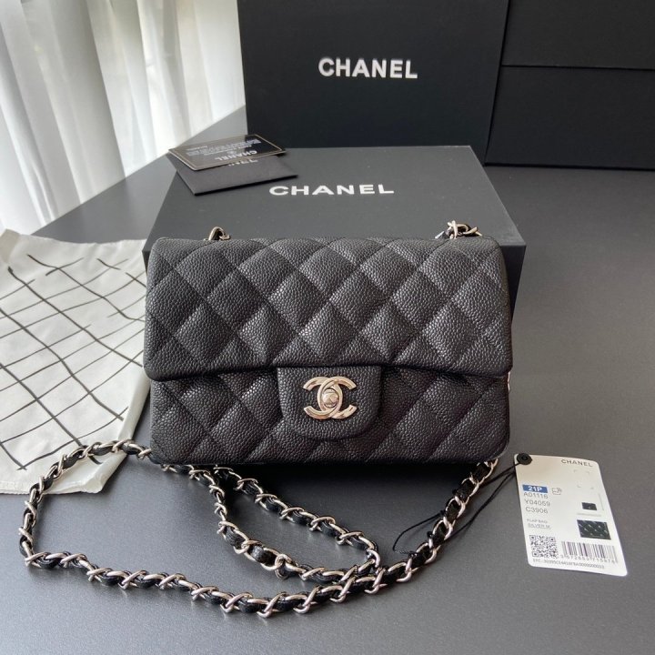 [국내배송]샤넬 클래식 뉴미니 플랩백 캐비어 블랙 은장 A01116