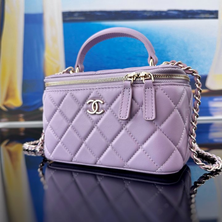 [국내배송]샤넬 탑핸들 베니티백 램스킨 퍼플 금장 AP2199