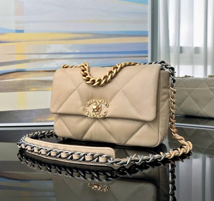[국내배송]샤넬 19 플랩백 미듐 베이지 금장 AS1160
