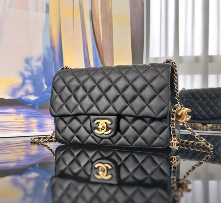 [국내배송]샤넬 25FW CC로고 체인 플랩백 램스킨 블랙 AS5756