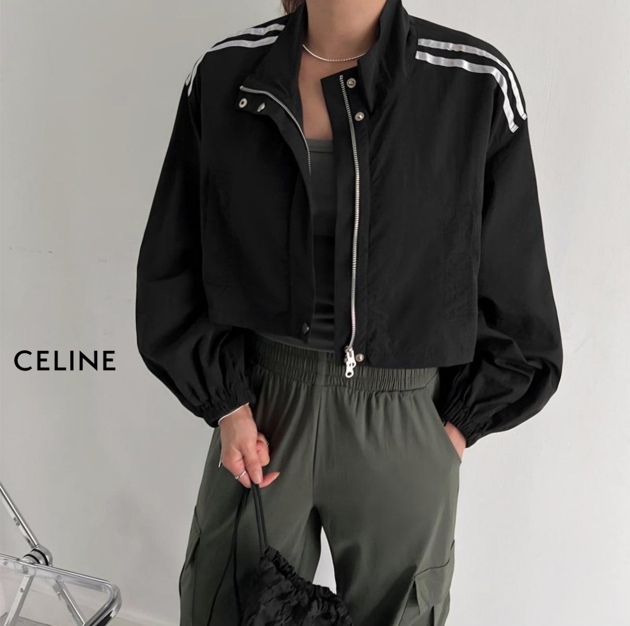 [국내배송]셀린느 두줄배색 크롭 점퍼
