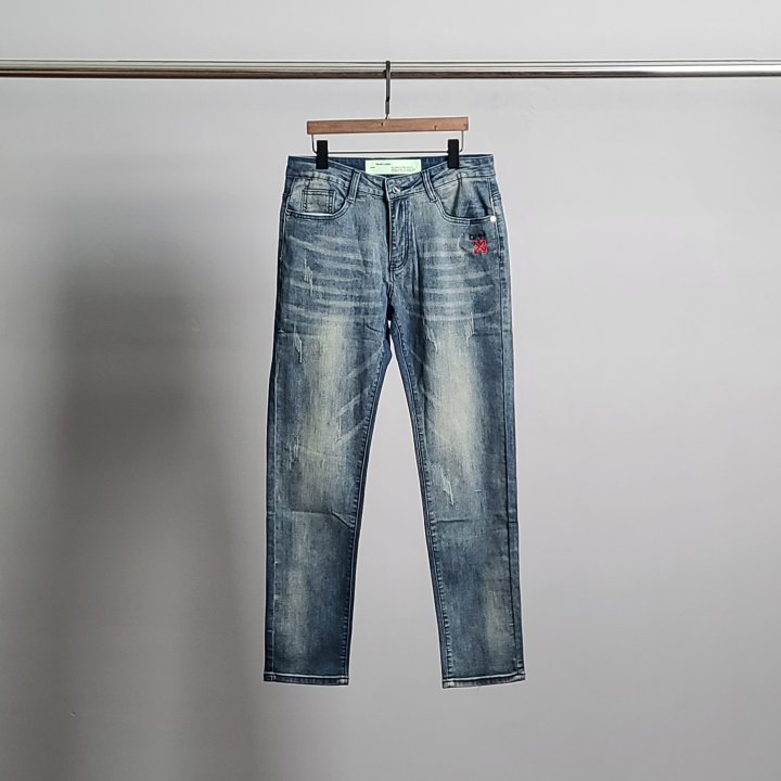 [국내배송]오프화이 로고자수 워싱 청바지 수량