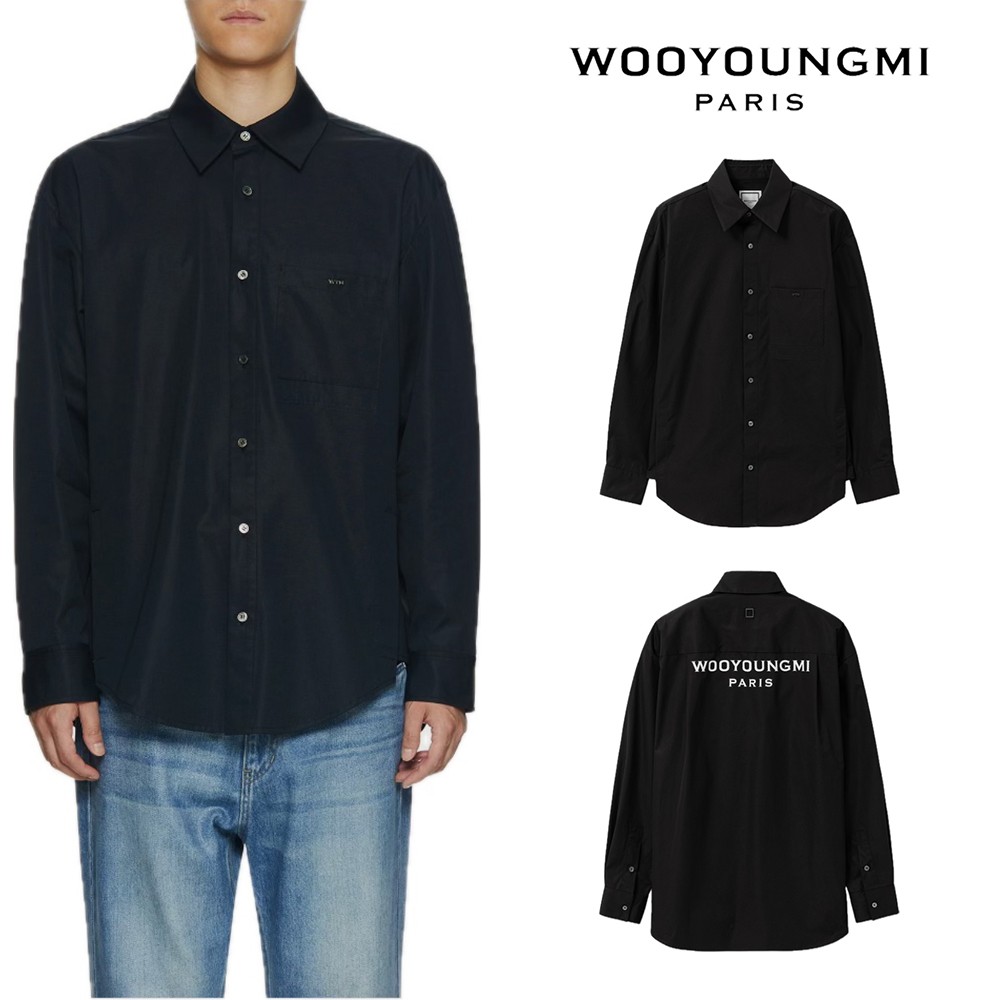 [국내배송]우영미 블랙 코튼 백로고 셔츠