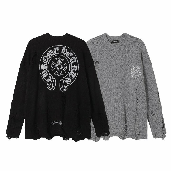 [국내배송]크롬하츠 로고나염 데미지 니트