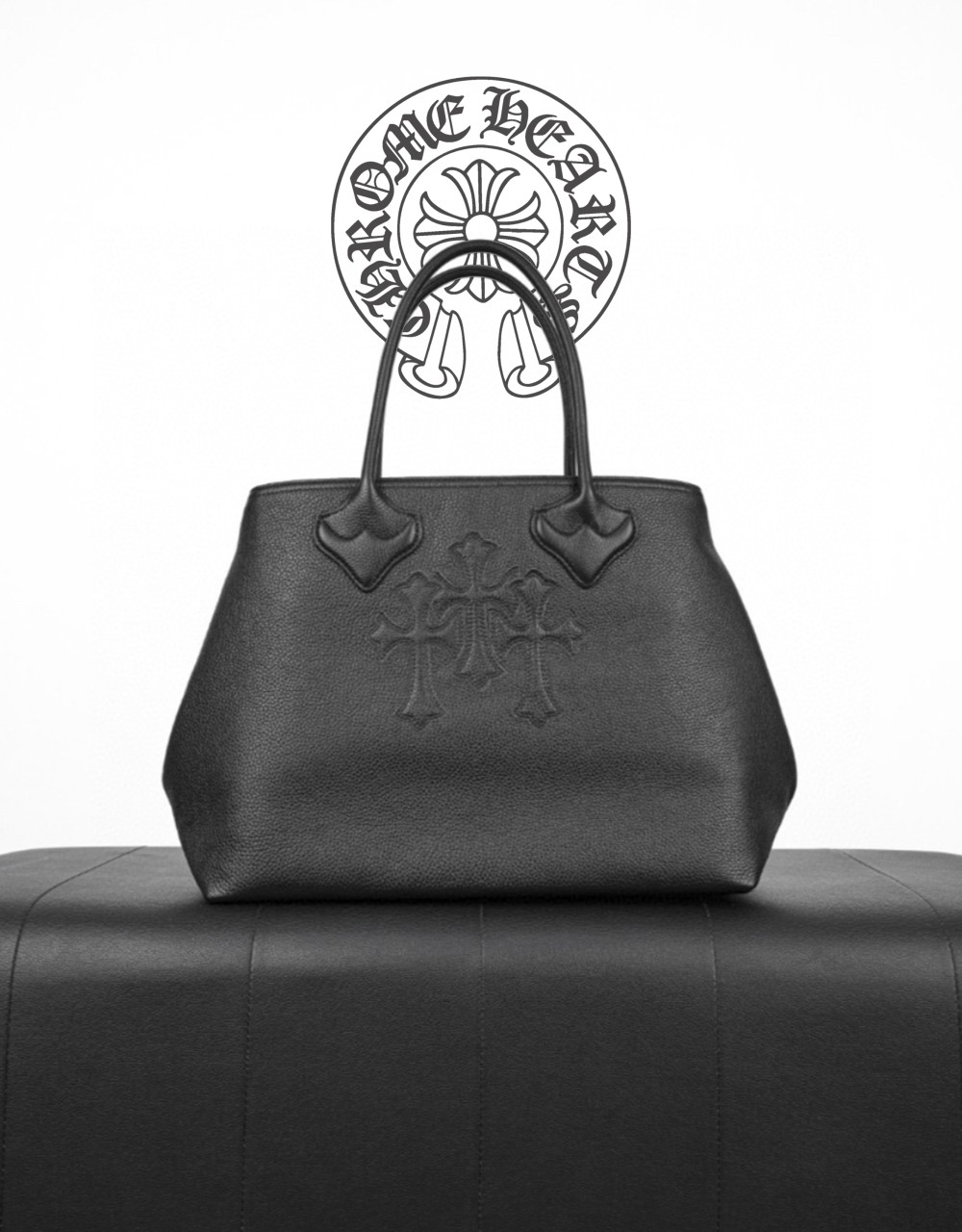 ■세메터리 십자가 가죽 자수와 함께 뒷면 하단에 크(롬)하츠 두루마리 로고가 은빛 포인트로 들어가있는 유니크하고 스타일리쉬한 토트백입니다.