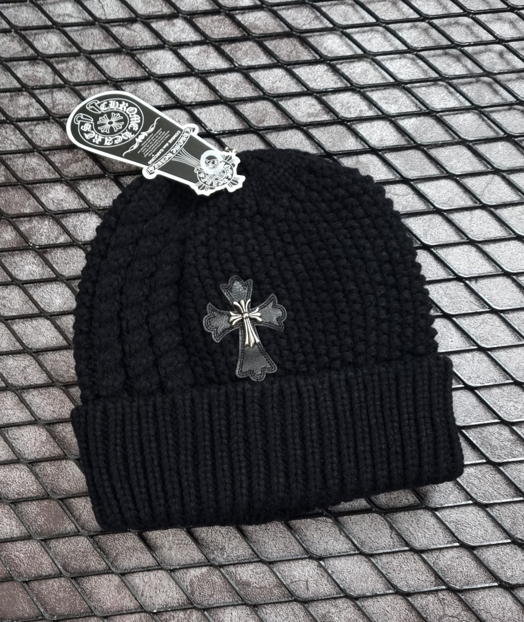 [국내배송]크롬하츠 크로스 레더패치 꼬임울 비니
