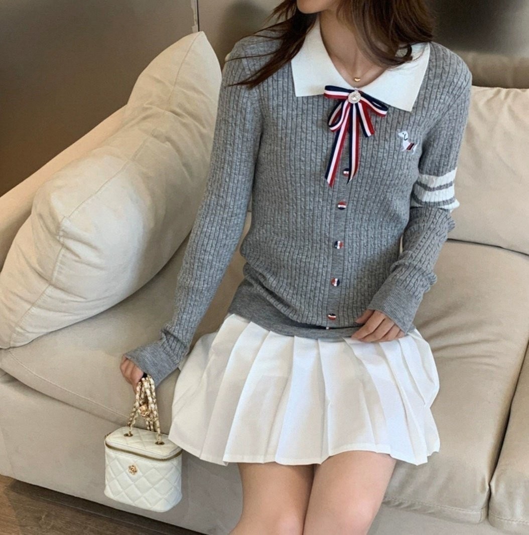 [국내배송]톰브라운 배색카라 강아지 꽈배기니트