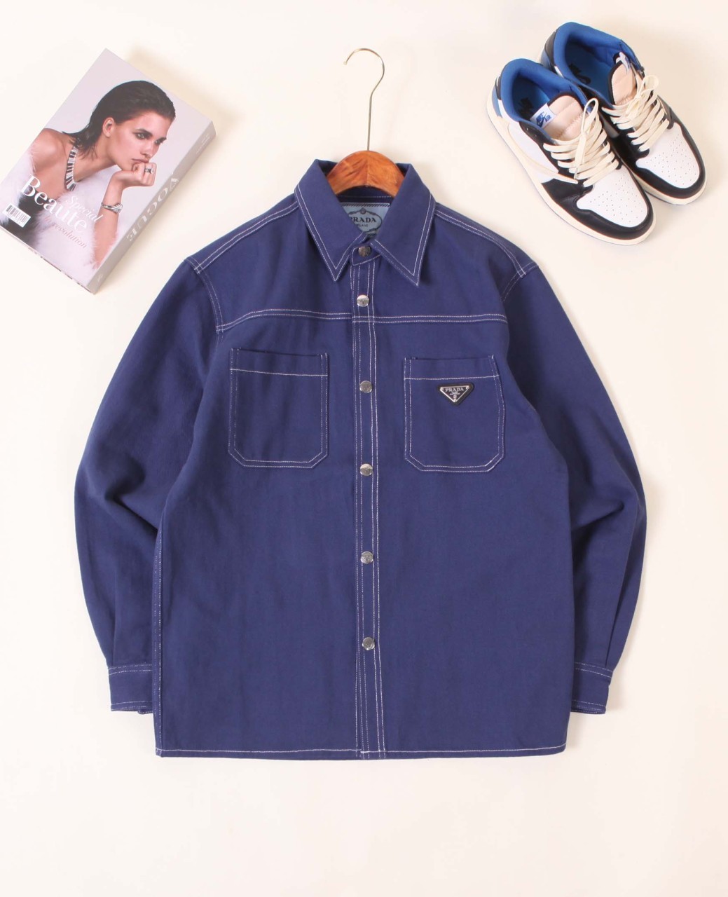 [국내배송]프라다 [PRADA] 라이트 데님 트라이앵글 로고 재킷 블루 수량