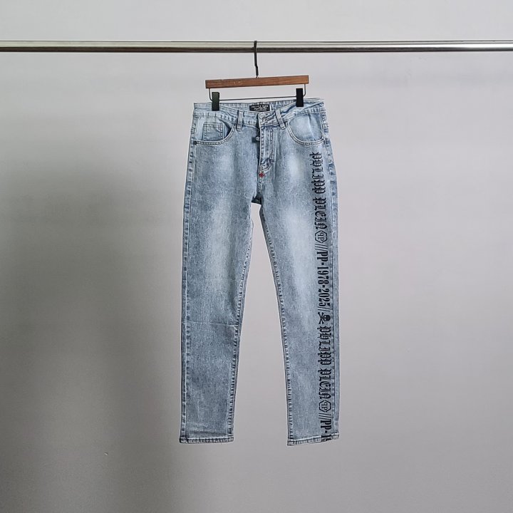 [국내배송]필립플레인 로고프린팅 연청 청바지