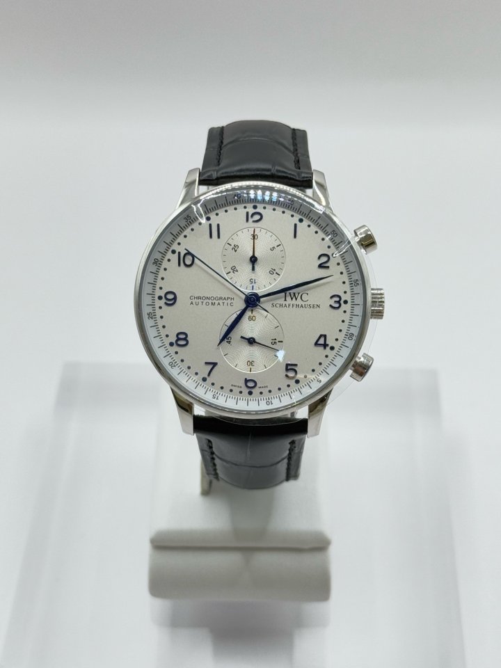[국내배송]IWC 포르투기스 흰판 블루핸즈 은장 가죽밴드 시계 40미리