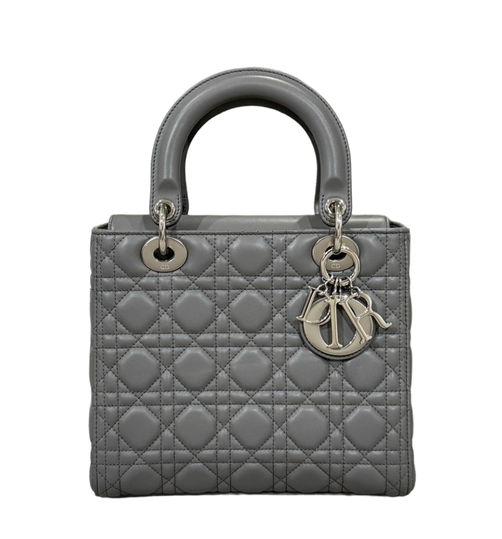 레이디 디올 미디엄백(스톤 그레이 은장/까나쥬/램스킨)