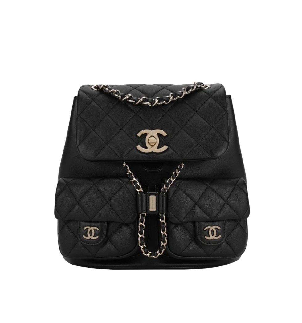 듀마 백팩 더블포켓 미디엄(블랙/금장/카프스킨)