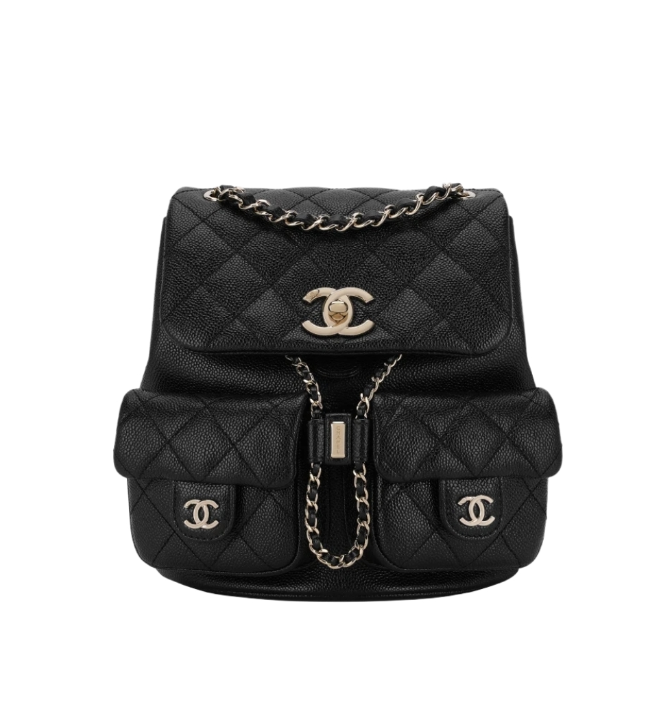 듀마 백팩 더블포켓 미디엄(블랙/금장/캐비어)