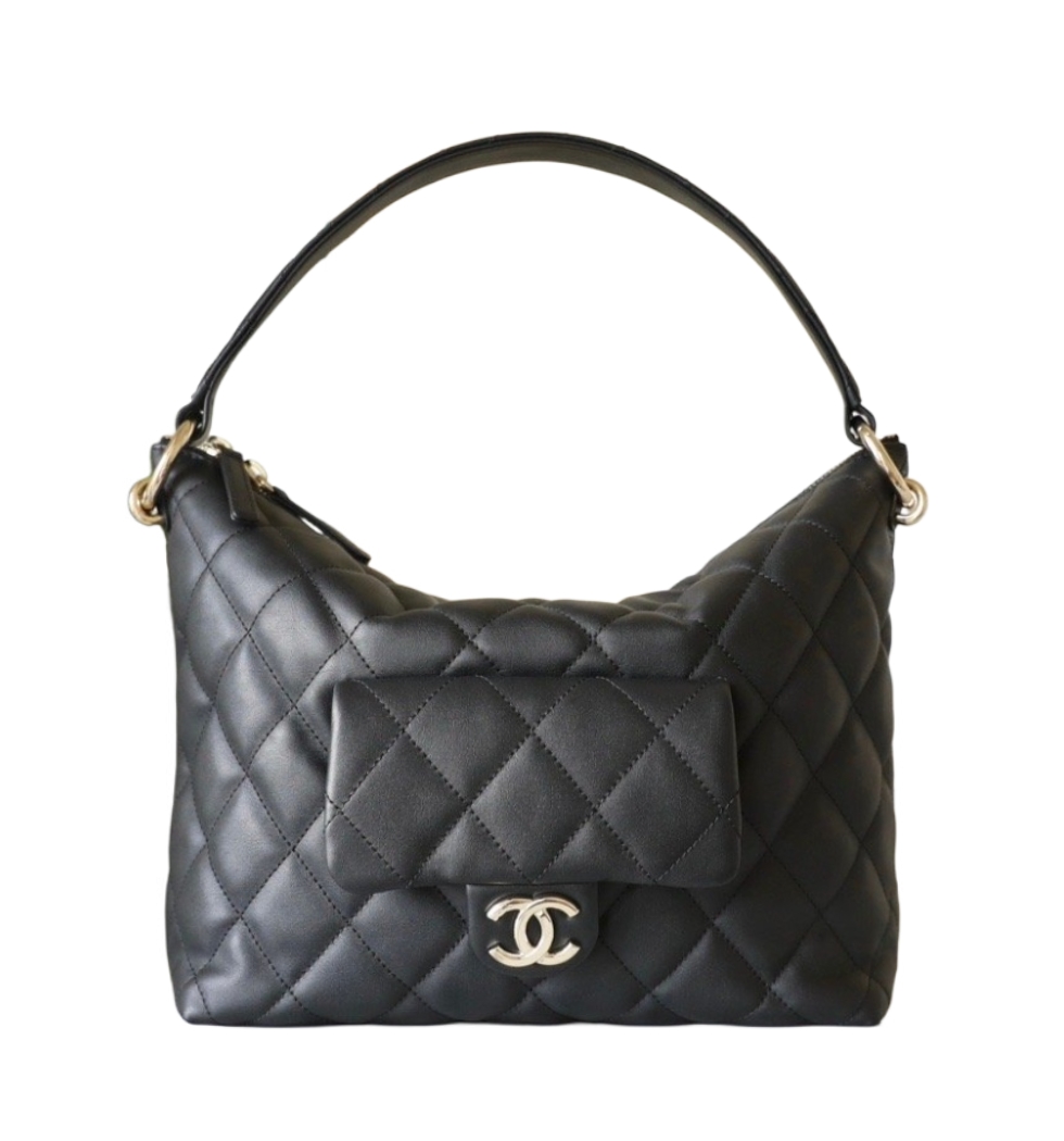 [프리미엄/해외배송]샤넬 빈티지 퀼팅 호보백(블랙/금장/카프스킨) 수량
