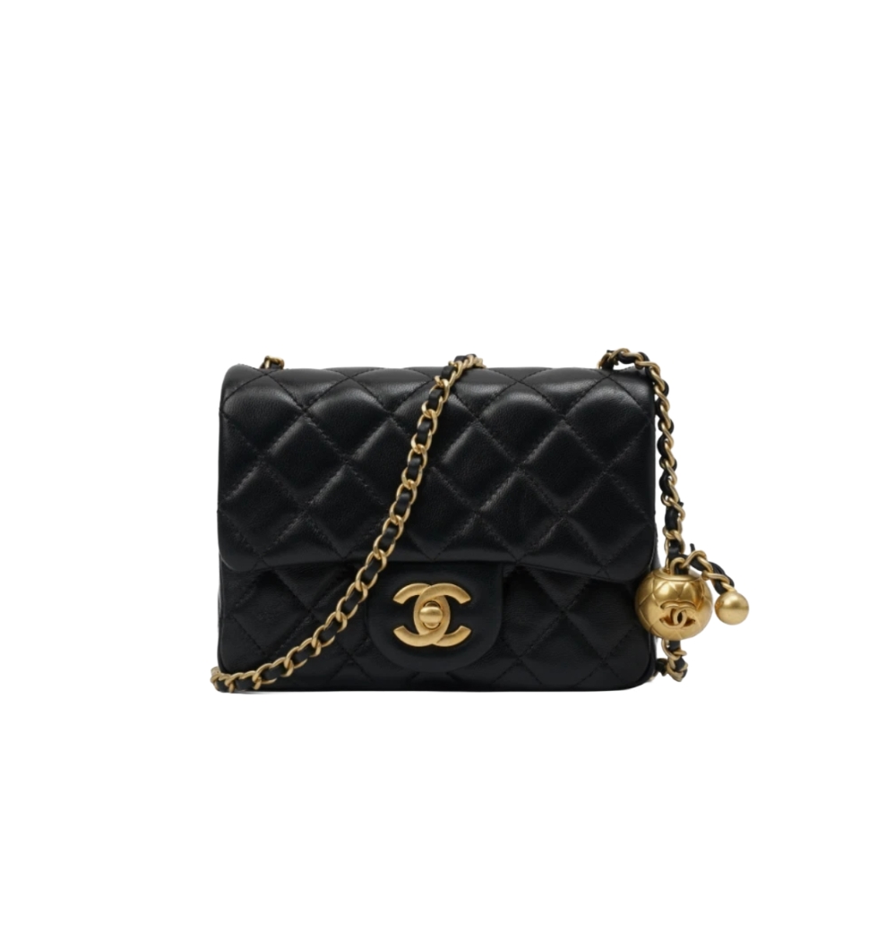 *정품가죽* 클래식 쁘띠삭 골드볼 플랩백(블랙/금장/램스킨)