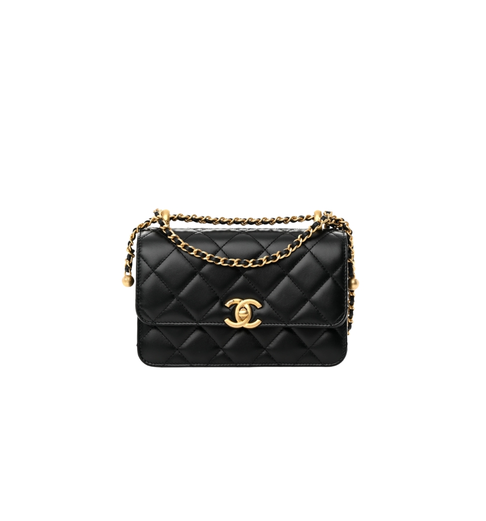 클래식 더블 골드볼 미니 플랩 백(블랙/금장/카프스킨)