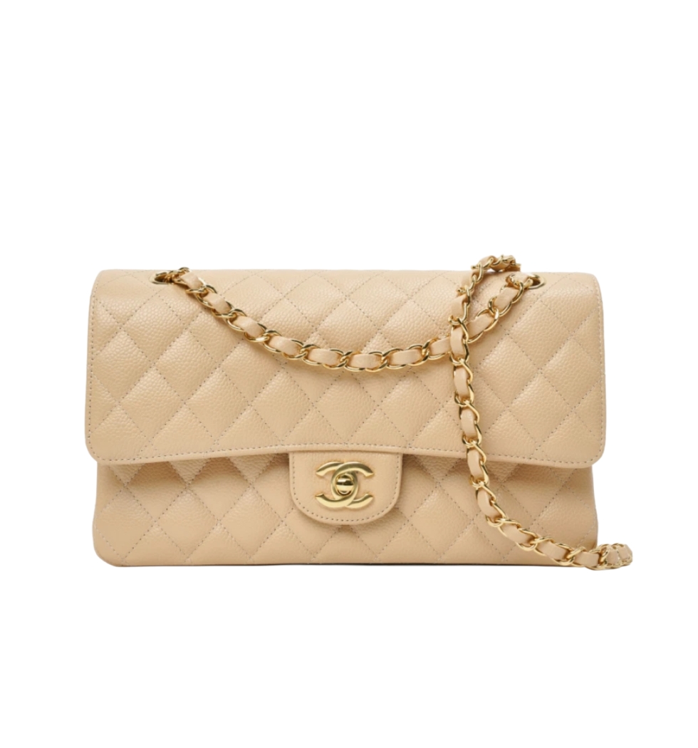 [프리미엄/해외배송]클래식 플랩 백 미디엄(베이지/금장/캐비어)