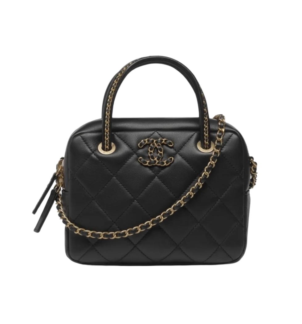 [프리미엄/해외배송]샤넬 탑핸들 체인 볼링백(블랙/금장/램스킨)