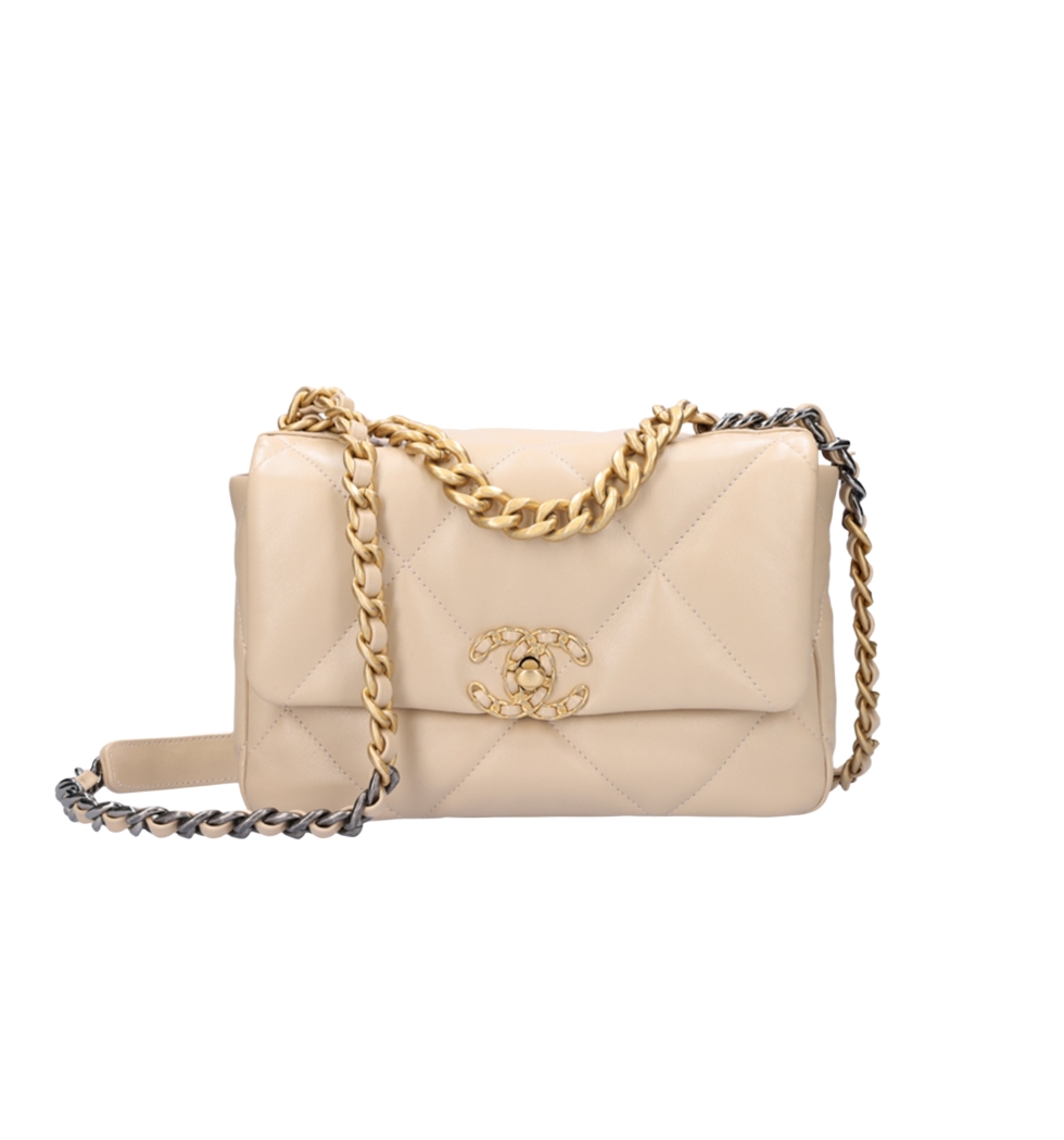 [프리미엄/해외배송]샤넬 19백 스몰 플랩 백(베이지/금장/램스킨)
