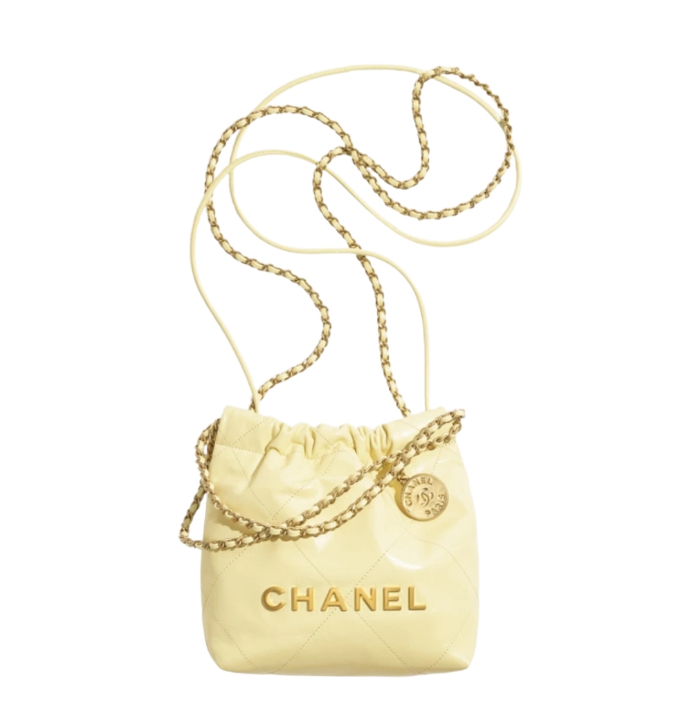 [프리미엄/해외배송]샤넬 22백 미니 핸드백(엘로우/금장/램스킨) 수량