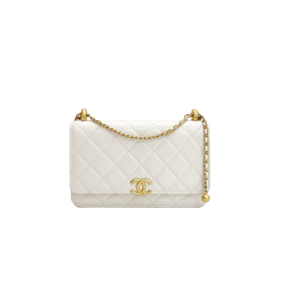 WOC 더블 골드볼 체인 지갑(화이트/금장/램스킨)
