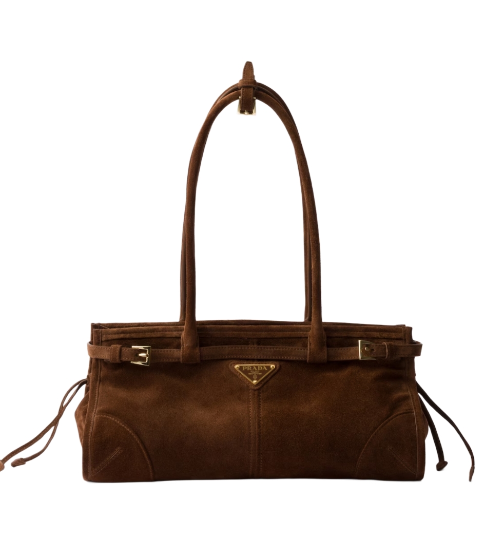 [프리미엄/해외배송]프라다 스웨이드 미디엄 핸드백(브라운)
