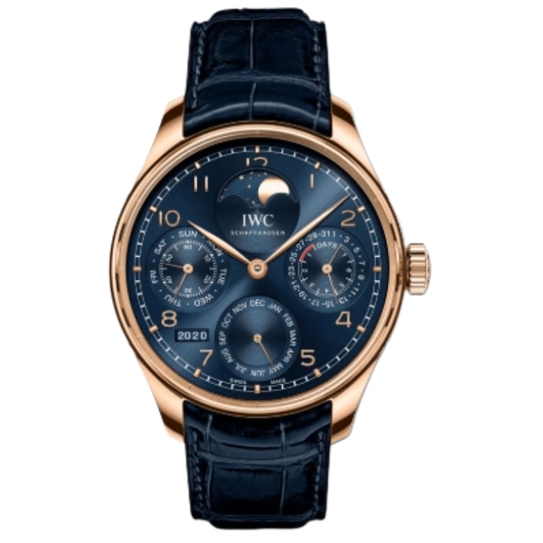 IWC 포르투기즈 Perpetual Calendar 44mm IW503312 Rose Gold Leather Strap Arabic Numerals Blue Dial[APS]